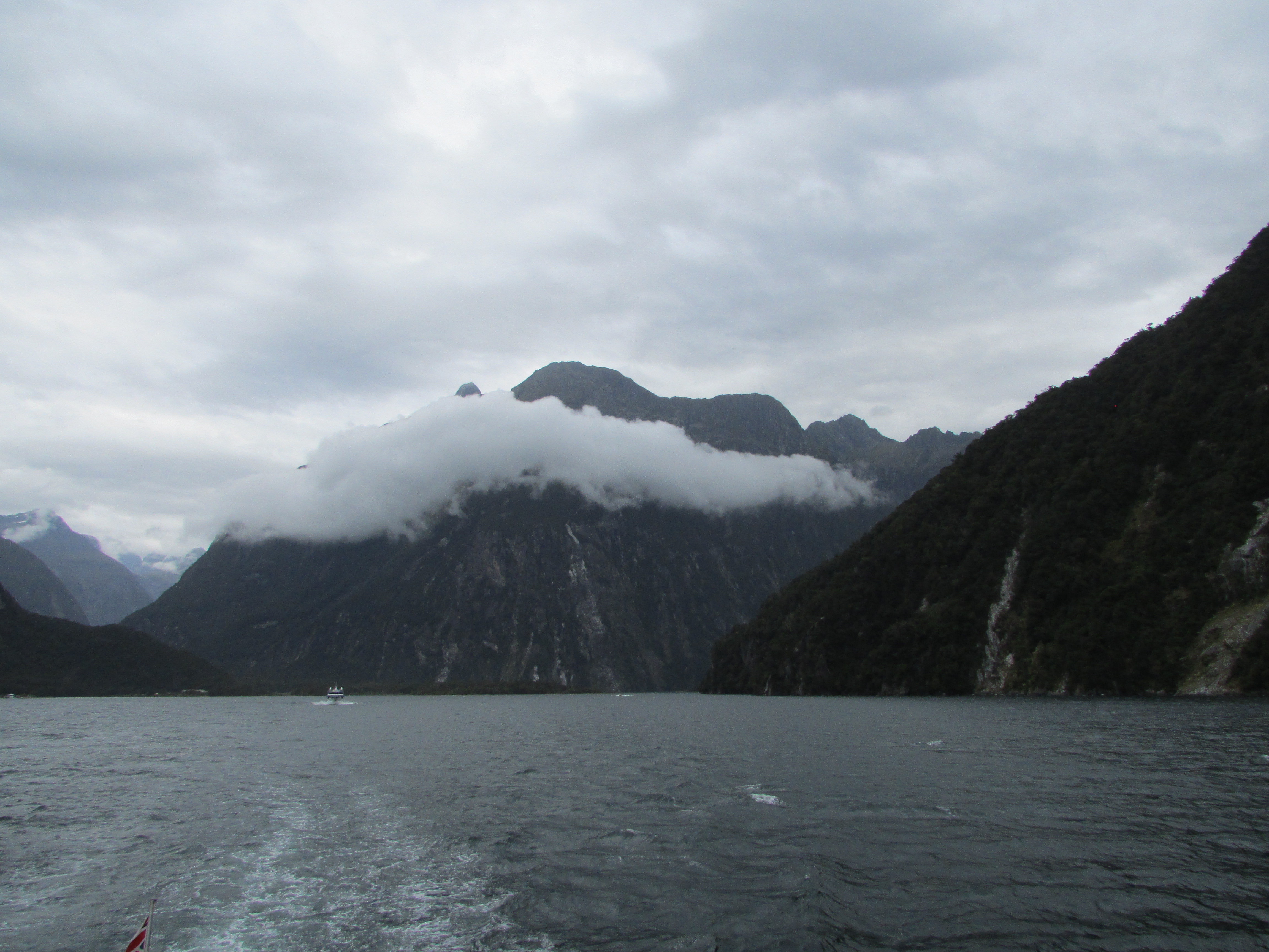 Elated with our achievement, we celebrated by going to two “green toilets” that smelt to high heaven, which is probably where we were when you looked out of the “trap door”. Thirty minutes later and a quick drive through a fantastic mountain tunnel we reached the World Famous Milford Sound which in my opinion was much better than Doubtful Sound, even with the “drizzle” – local speak for “chucking it down” for us Brits.