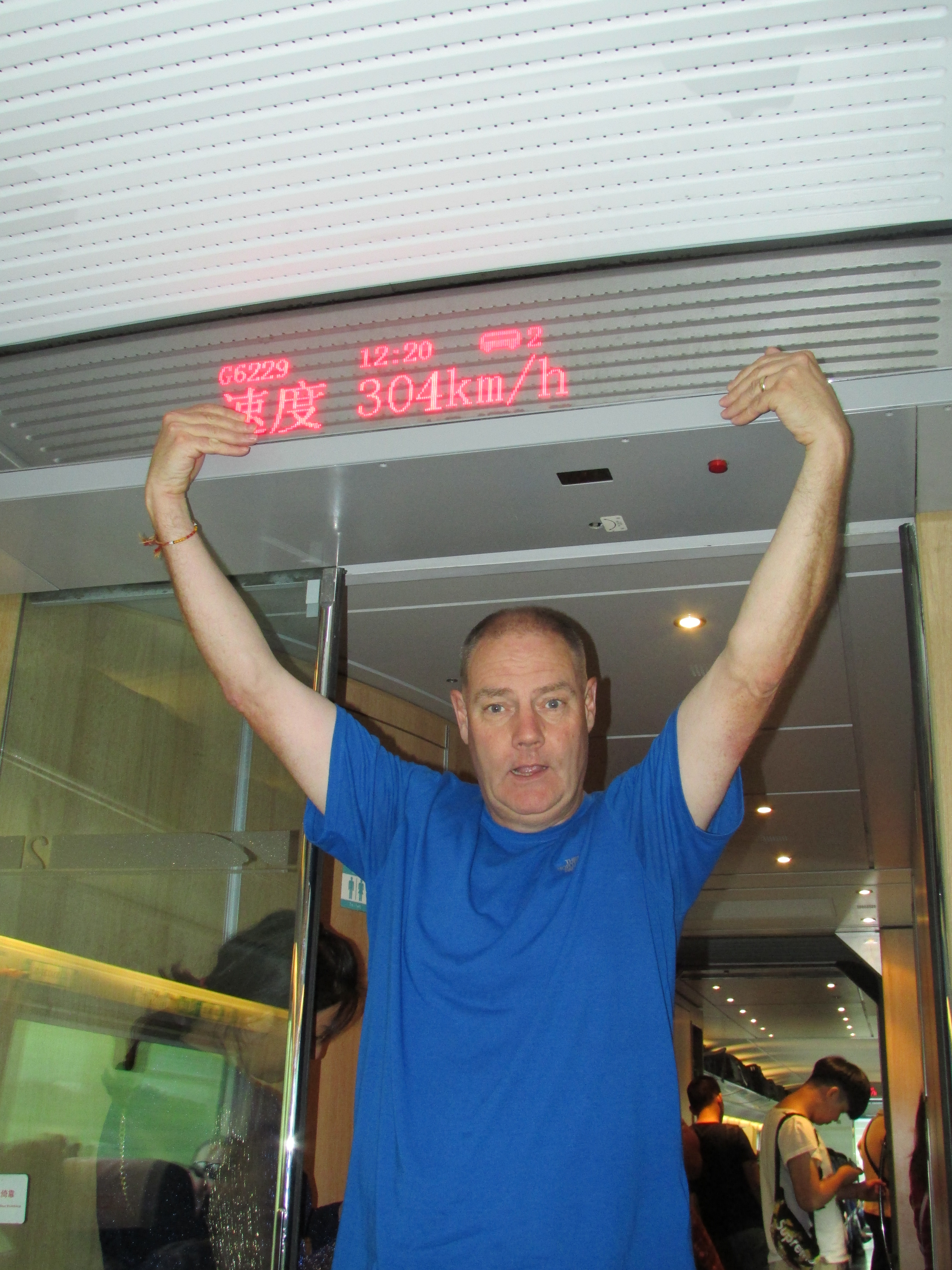 Just one more day in China, before we arrive in Hong Kong. And one more treat in store for me as we travel for three hours on TWO new “Bullet Trains” the first of which runs at 260kmph (163mph) and the second a slightly quicker 320kmph (200mph). James Duckworth/Alastair Black/Richard Daw/Steve Elliott/Neil Barton/Phil Whitby – what about this as a potential RAT experience? Even Sarah – who is now suffering from a cold AND a prolapsed/slipped disk is looking forward to this trip and the chance hopefully to see some blue sky.