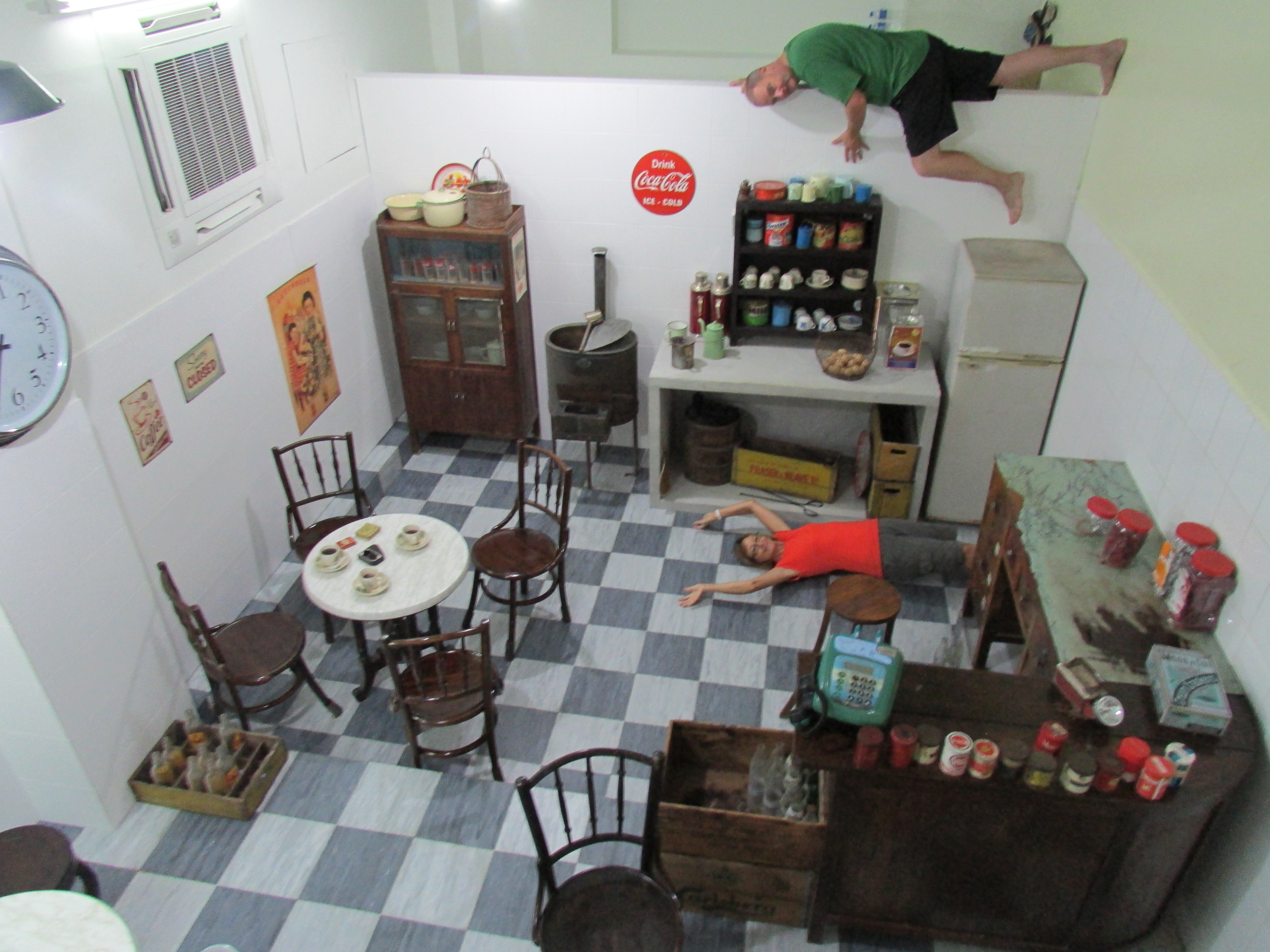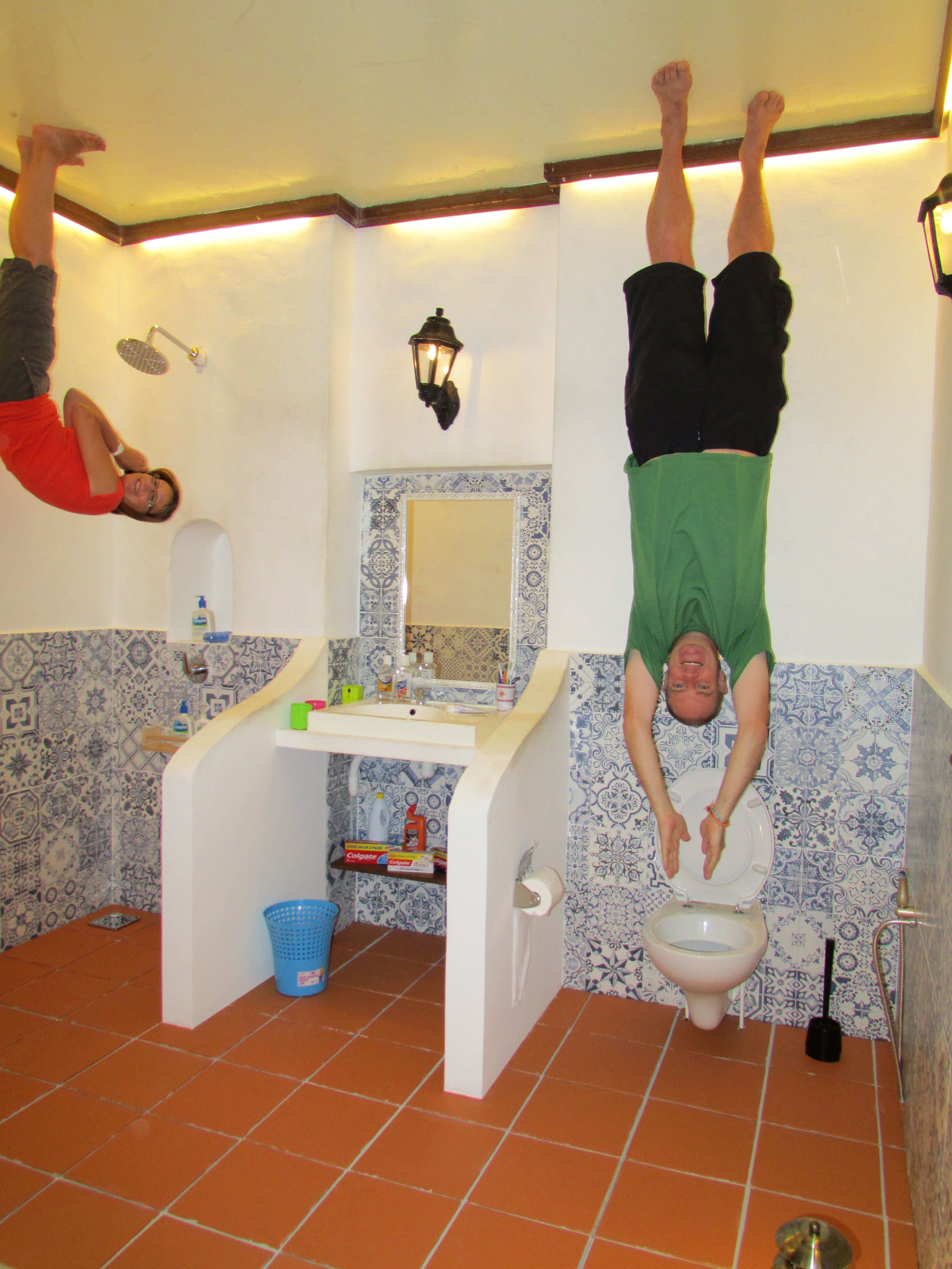 The chance to turn our lives “upside down” was grabbed with both hands when we visited a bizarre “Museum” in central George Town.  We had enormous fun, posing in different rooms.  Our fav shots were the ones in the toilet and the bedroom – which are yours…?