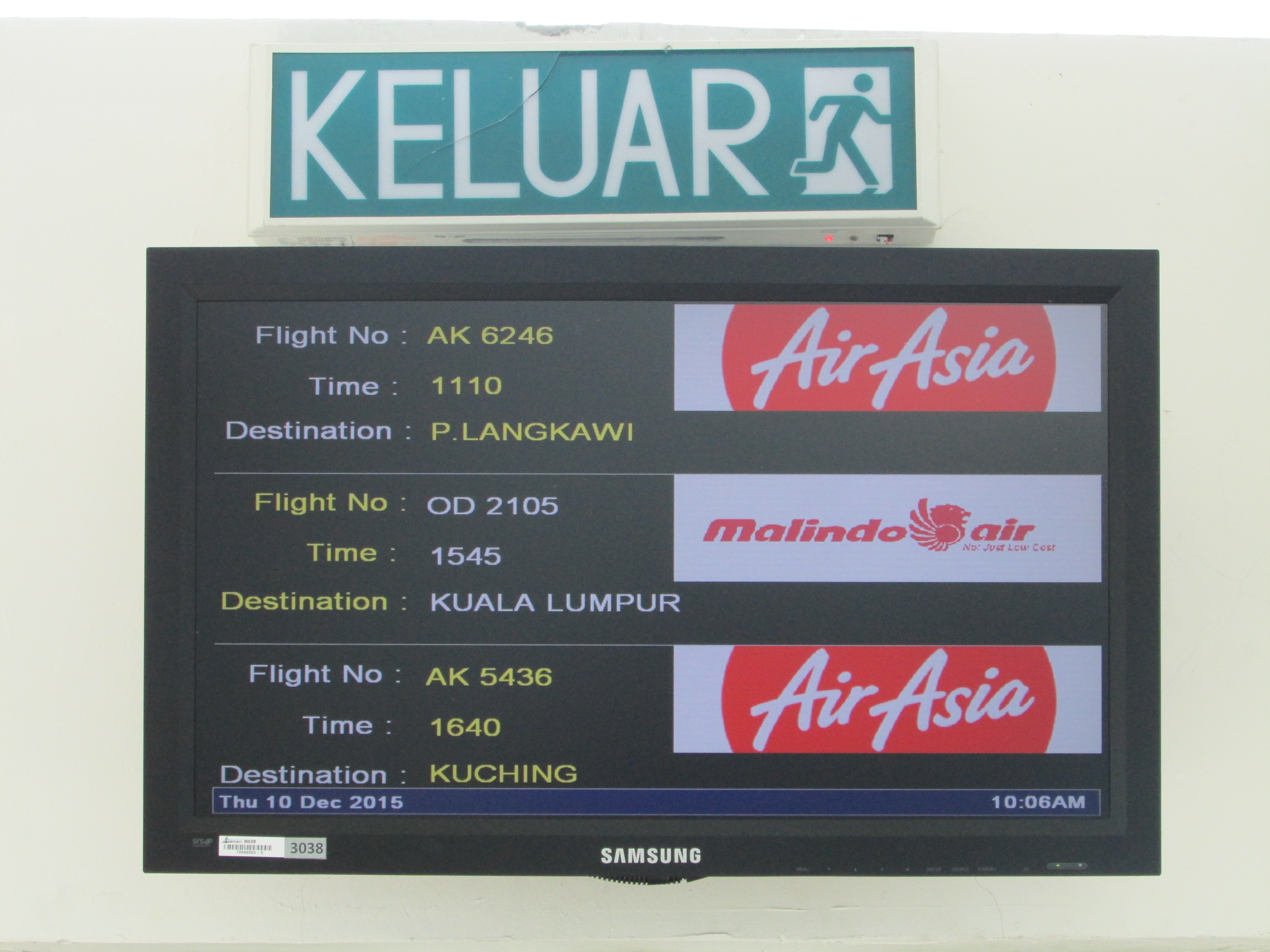 So flight Number 17 on our RTW Trip is about to be called.  Penang to Langkawi.  Probably one of the shortest scheduled flights I will ever take.  An Air Asia A320 200 sits outside ready to leave.  The flight is scheduled to take 35 minutes.  The reality is that the flight is just 80 miles to a “paradise” island.  I watched some “saddos” You Tube video last night, the flight was in the air for only 17 minutes.  But the flight was a bargain at just £17 including taxes and baggage charge.  “Now Everyone Can Fly” is the airline’s strapline – well they can at the moment, but the financials for Air Asia look decidedly dodgy since the tragic crash a year ago.  So, got to fly – the flight has been called.  See you later…