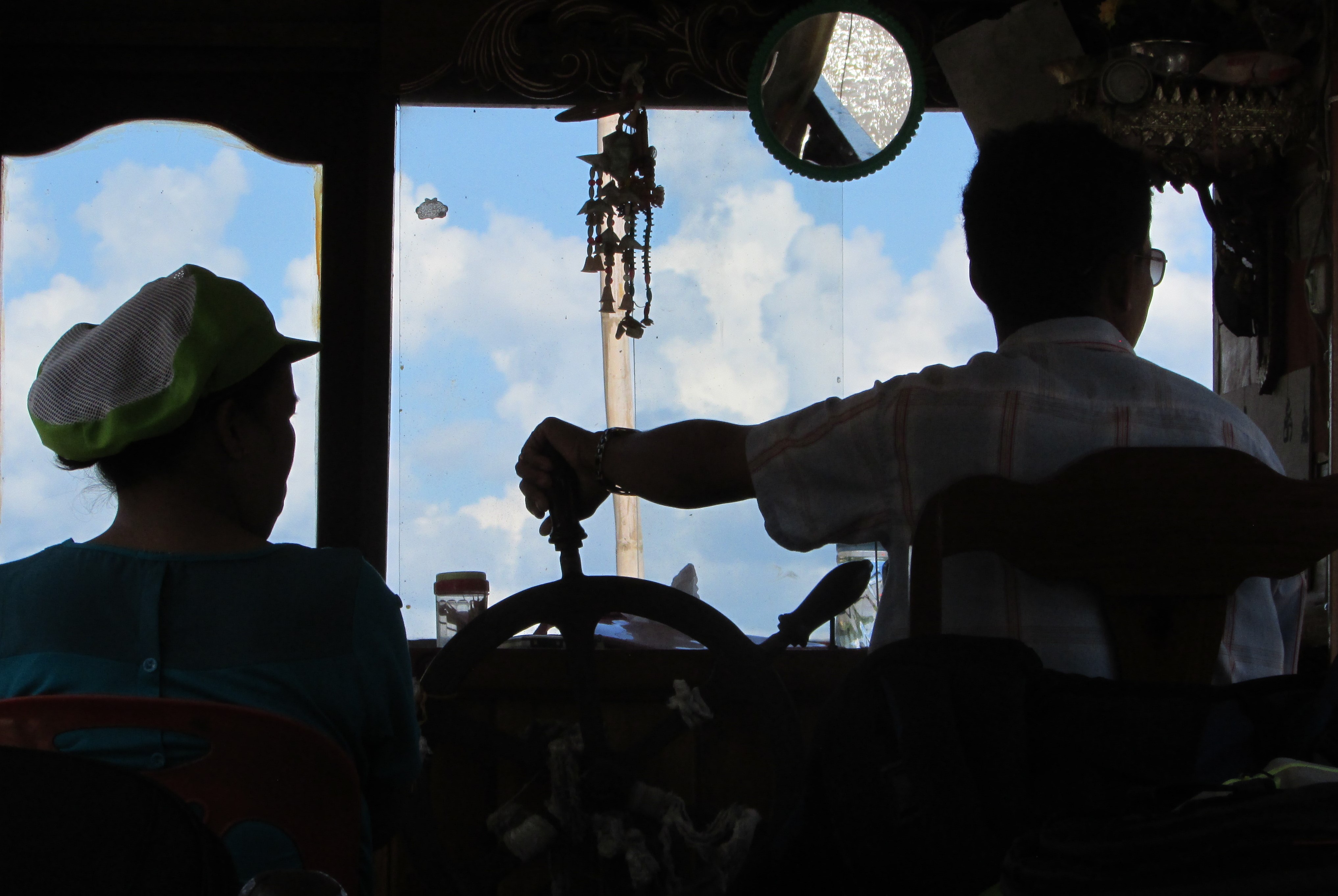 The road then abruptly stopped, replaced by a makeshift temporary quay with around fifty brightly coloured wooden boats all bobbing up and down. Highway became waterway. All change please!